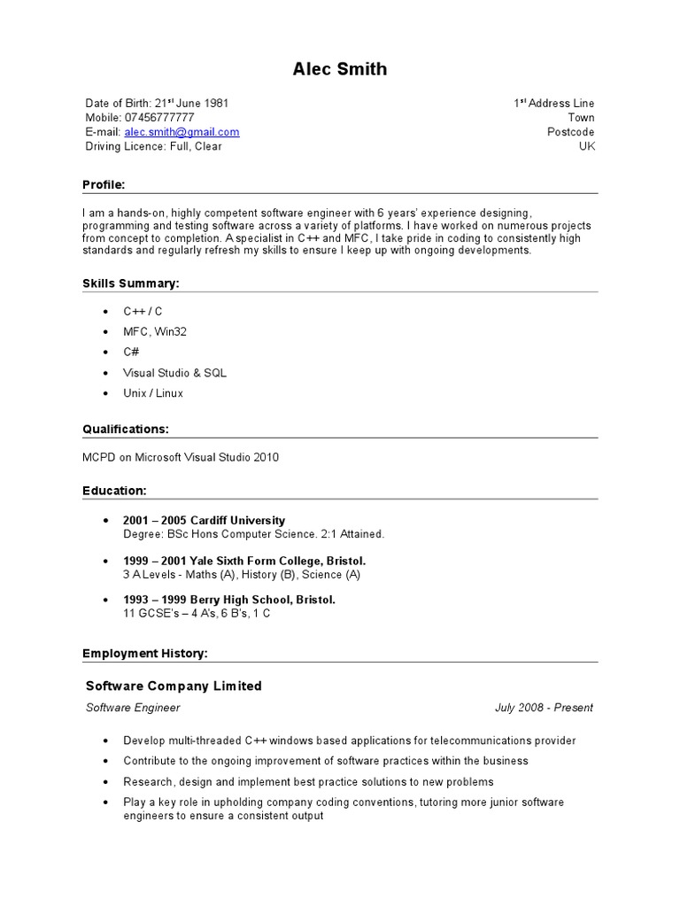 Check out our free example: Write an engaging software engineer resume using indeed's library of free resume examples and templates. With 12 software engineer resume examples to land your next job in 2020! Software engineer cv template that gets interviews. Ltd, bangalore from april 2009 to april 2010. Engineer cv software template uk. Join over 260,000 professionals using our software engineer examples with visualcv. Software engineer resume helps the candidates to create killer resumes by providing samples, templates, and ideas. In a uk audit of 20,000 online cvs, only one. Use this example as a guide to write your own interview winning cv. In my role as a software engineer, i work in a busy it department writing new programs and developing the software side of. Browse through our list of the best software engineer cv examples for some inspiration when putting your own together. It's your software engineer cv that will showcase your skills and experience, making you attractive to the best employers.